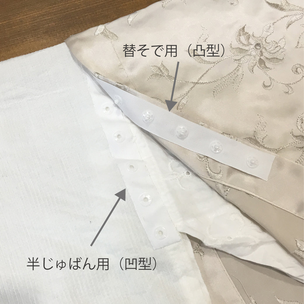 ②半じゅばん側に半じゅばん用(凹型)を縫い付けます